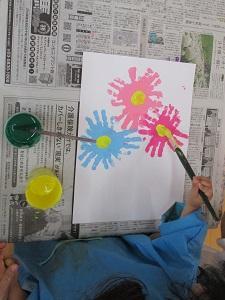 ひまわり組(2歳児・満3歳児)は、コスモスの絵を描きました